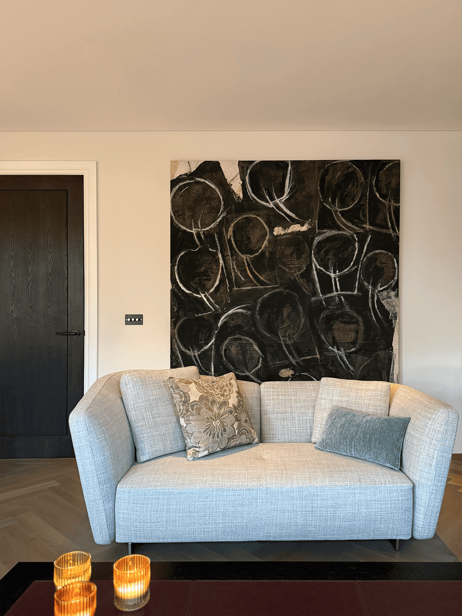 Gezien ik Swinnenstore in Sint-Niklaas regelmatig bezoek, was er geen gebrek aan inspiratie: van keukendesign tot het kiezen van materialen, ideeën voor de tafel en stoelen, de bijzettafel, een sofa, herstoffering van bestaande stoelen en natuurlijk ook de kunstwerken.