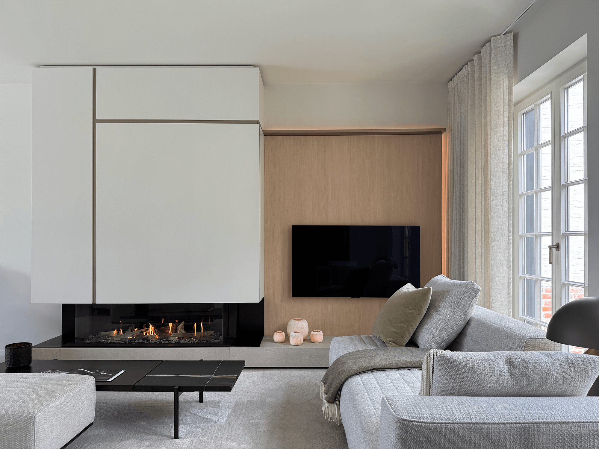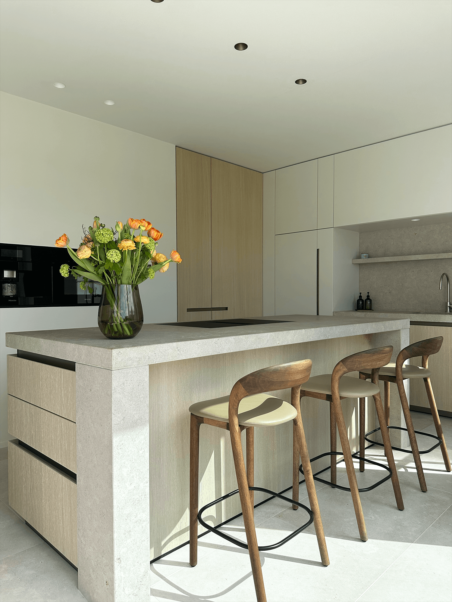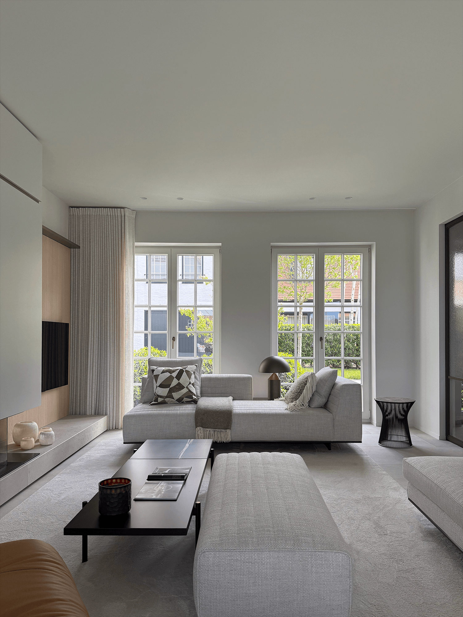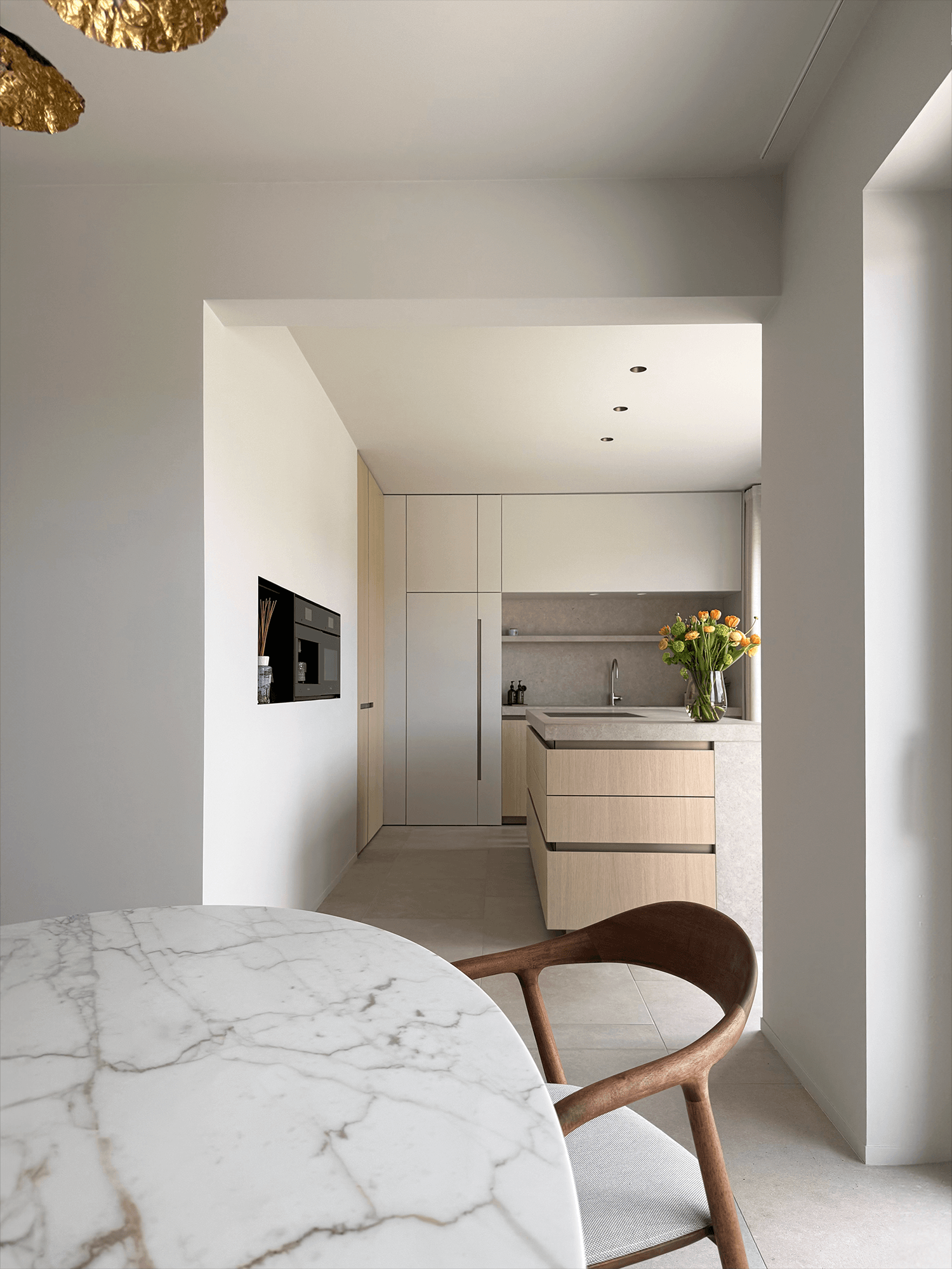 Een plek die meteen aanvoelt als thuiskomen. Dit tweede verblijf in Knokke straalt rust, sereniteit en verfijning uit. Zachte tinten, lichte materialen en een doordachte mix van texturen zorgen voor een warm en evenwichtig interieur.